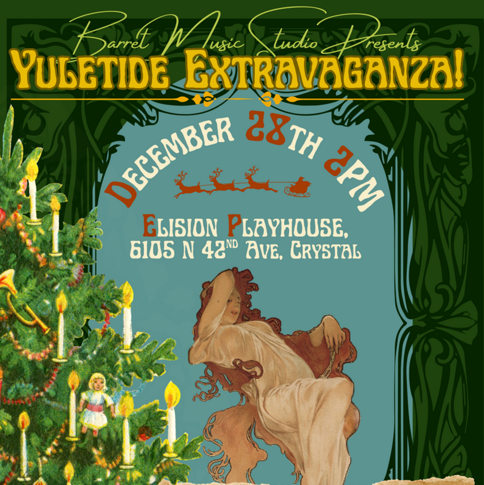 Haul out the holly! Barrett Music Studio presents the 2025 Yuletide Extravaganza - an evening of holiday music, merry-making AND audience participation! The students of Barrett Music Studio are joined by a professional band to ring in the holiday season with style and pizazz.